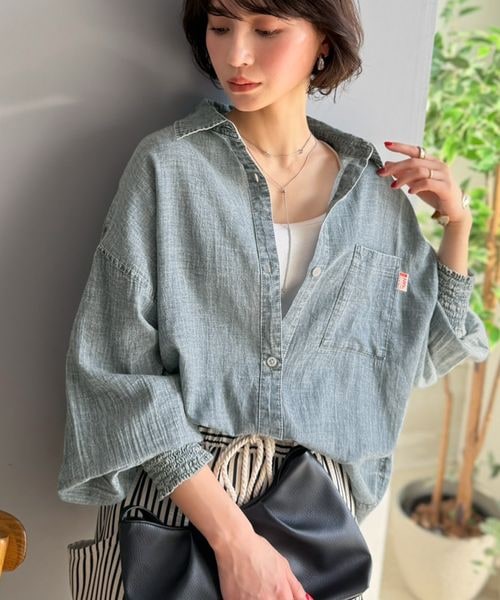 《JaVaジャバコラボ》オーバーサイズ胸ポケットシアーデニムシャツ jv1010593