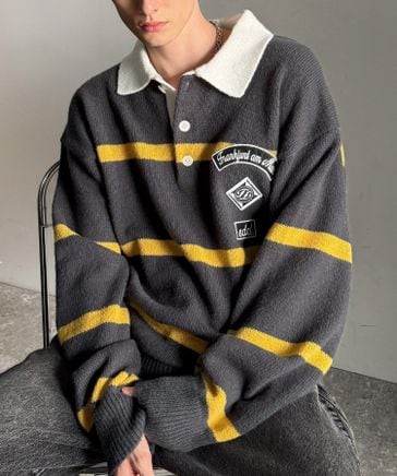 《JaVaジャバコラボ》ワッペンデザインラガーポロニット(長袖)jm1029131