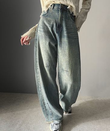 《Javaジャバコラボ》アシメトリーウエストデザインクラッシュ加工ダメージワイドデニムパンツ ¥3,499 税込