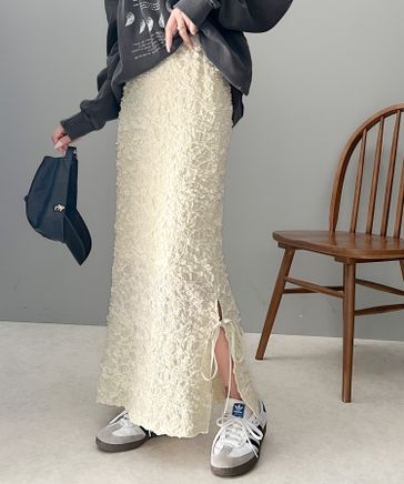 女性らしさを引き立てる。ジャガード素材サイドスリットジャガードリボンスカートce1050258 ¥3,998 税込