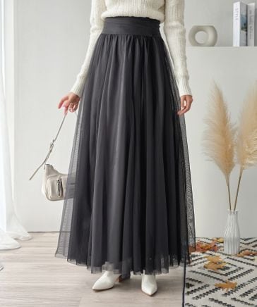 【mily bilet】アシメトリーフリル使いプリーツチュールスカート mi1019042 ¥3,499 税込