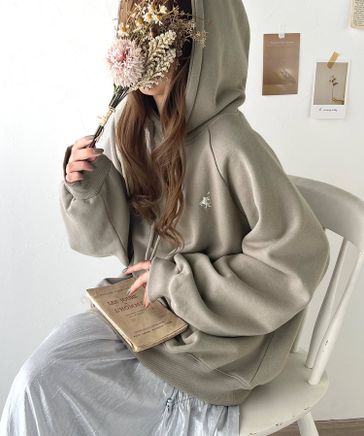 《JaVa ジャバコラボ》トレンドをプラス。ランダム刺繍裏起毛パーカー jv1260293