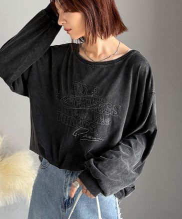 綿100%英字胸刺繍キャンディースリーブシルケットカットソーce1260394