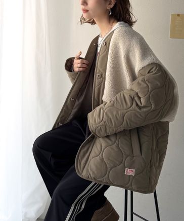 【Java】ボア切り替えひょうたんキルティングコートjv1240103