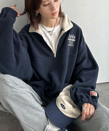 《JaVa ジャバコラボ》旬なレトロスポーツ。フリースアノラックハーフジップjv1260039