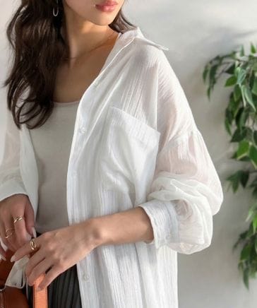 ボイルシャンブレーベーシックランドヘムオーバーサイズシャツ ce1110171