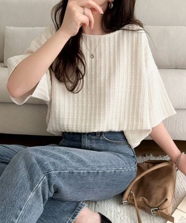 ラフなのに品よく見える。軽やかぽこぽこフクレジャガードトップス(半袖)ce1260557