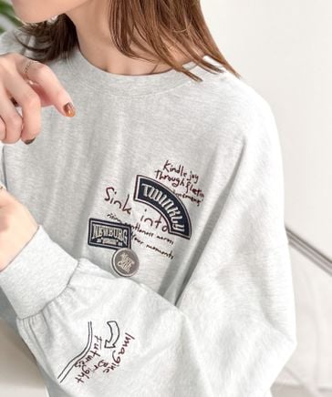ゆるさの中に「ちょうどいい」お洒落感!綿100%刺繍ワッペンドルマンロンTEE ce1260619