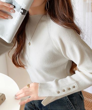 色違いで欲しくなる定番item。袖ボタンハイネックリブニット(無地・ボーダー) ce1020148