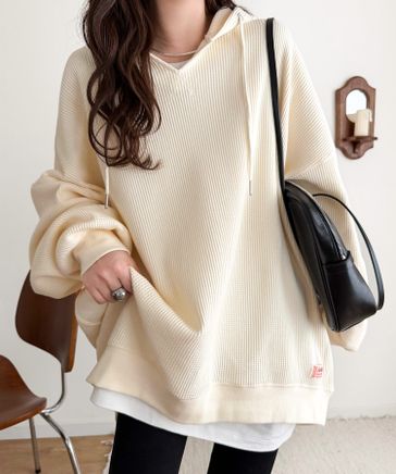 《JaVa ジャバコラボ》綿100%オーバーサイズワッフルパーカーjv1260611