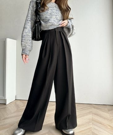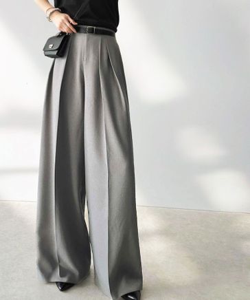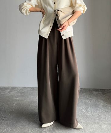 上品なデザインと履き心地。タック使いワイドシルエットハイウエストスラックスce0940224