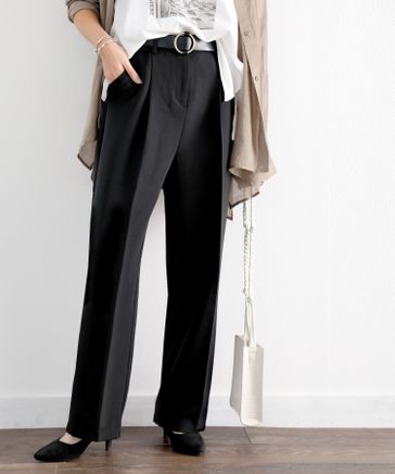 さらっと美脚。細見え2インタックハイウエストワイドスラックスパンツ ce0940213