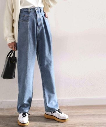ゆったりハイウエストワイドストレートチノカラー&無地オーバーサイズ デニムパンツ elf019
