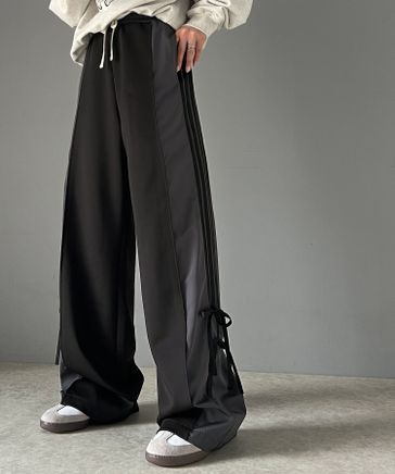 【mily bilet】サイドリボン2WAY素材切り替えワイドトラックパンツ mi0789006