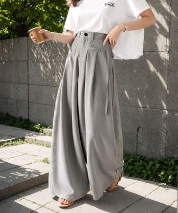ラクして魅せるシルエット。ウエスト2way楊柳プリーツイージーパンツce1020305