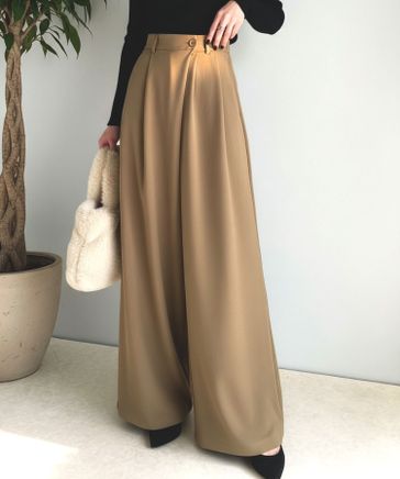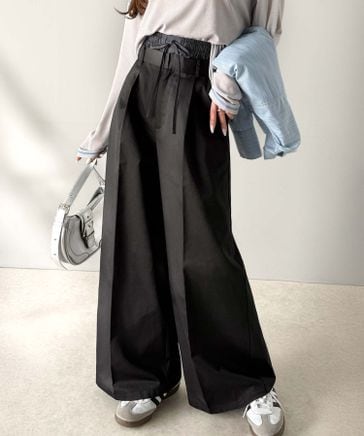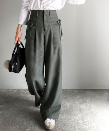 動くたび軽やか上品シルエット。サイドリボン付き3タックハイウエストワイドパンツ ce1015073