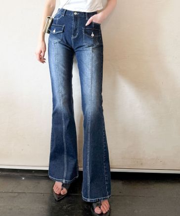 【mily bilet】脚、盛れすぎ注意!ポケットデザインストレッチフレアデニムmi0909009