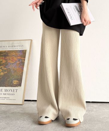 履き心地楽ちん&スッキリ脚長魅せ。ランダムリブニットパンツce1050323