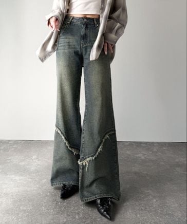 【mily bilet】サイドフリンジ使いヴィンテージ風デニムフレアパンツmi0909006