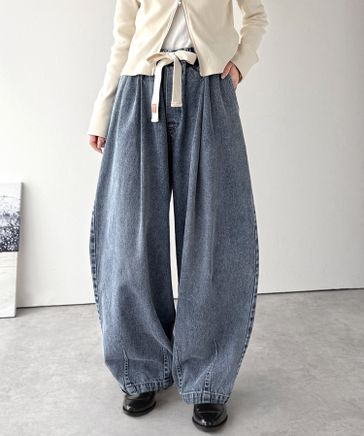 こなれ感抜群の1本。ゆったりシルエットカーブデニムエッグパンツce0900012