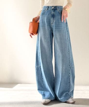 自然なカーブで美脚見え。抜け感たっぷりカーブラインデニムパンツ(ワイド)ce0900016