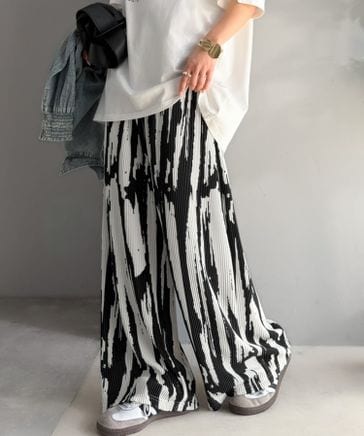 無地から目を惹くニュアンス柄まで豊富にご用意!柄アソート細プリーツパンツce1015101