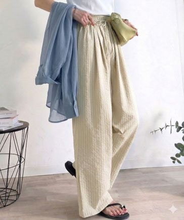 涼しげ&上品。ストライプサッカー素材2タックイージーパンツ(セットアップ可能)ce1010576