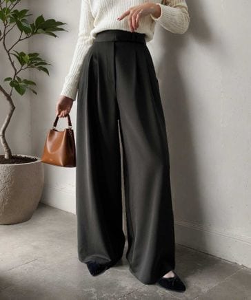 上品なデザインと履き心地。タック使いワイドシルエットハイウエストスラックスce0940224
