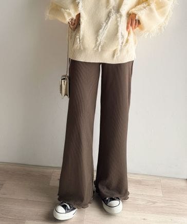 履き心地楽ちん&スッキリ脚長魅せ。ランダムリブニットパンツce1050323