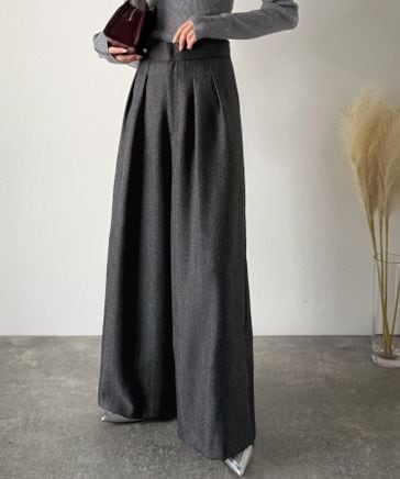 ツイード調ハイウエストワイドスラックスパンツ ce0940216