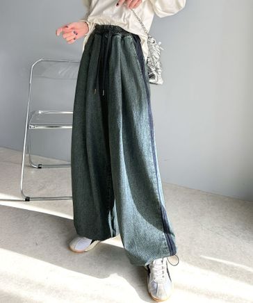 環境に優しいサステナブル素材。綿100%デニム素材サイドラインワイドイージーパンツce1260335