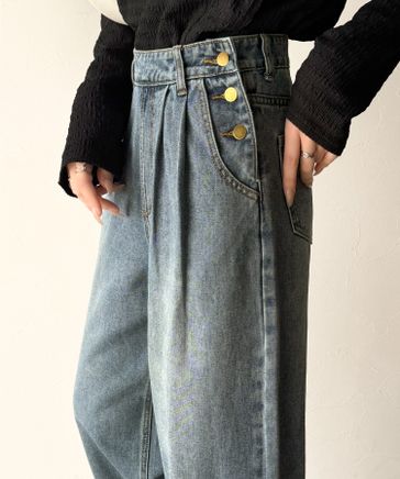 スタイルアップと抜け感叶う。サイドボタン2タックワイドデニム(ストレート)