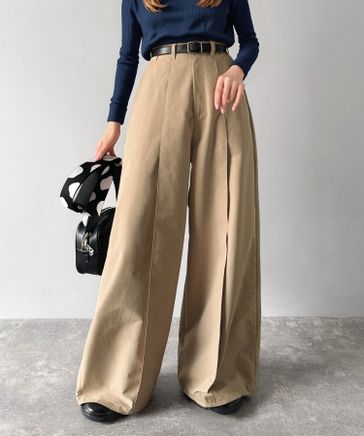 美脚魅せ、センタープレス。オールシーズン大活躍のタックワイドイージーパンツ clo18002