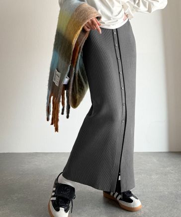 前後2wayで着まわせる!配色ボタンラインリブスカート(ロング丈)ce1050322