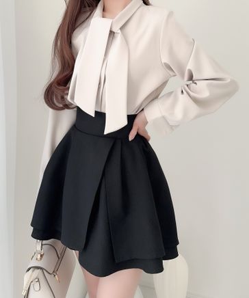 【mily bilet】アシメトリーフリル使いプリーツチュールスカート mi1019042
