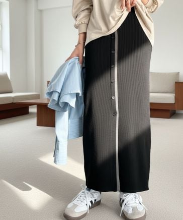 前後2wayで着まわせる!配色ボタンラインリブスカート(ロング丈)ce1050322