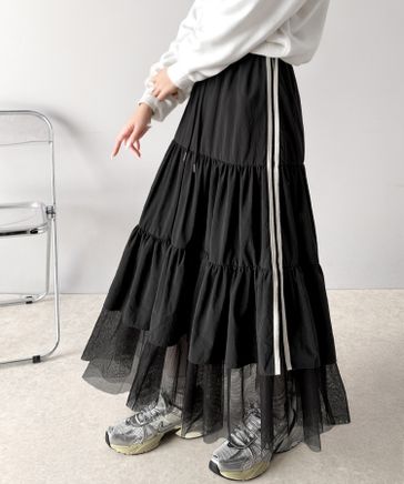 ナイロンチュールティアード ロングスカート (サイドラインあり・なしの2タイプ)ce1260351