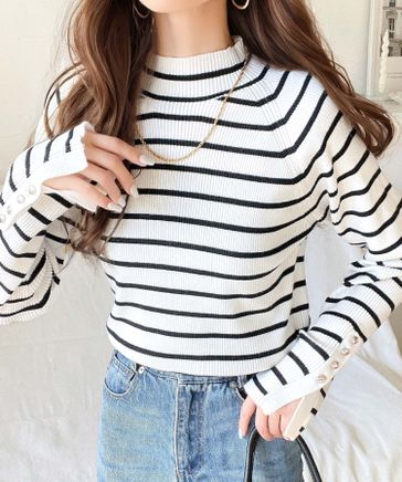 色違いで欲しくなる定番item。袖ボタンハイネックリブニット(無地・ボーダー) ce1020148