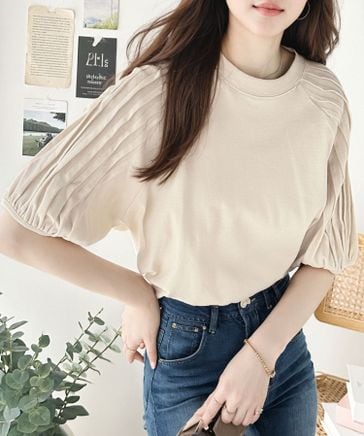 華奢見えが叶う女性の味方。キャンディースリーブプリーツメロートップス ce1110087