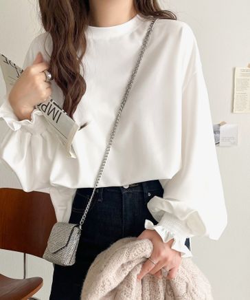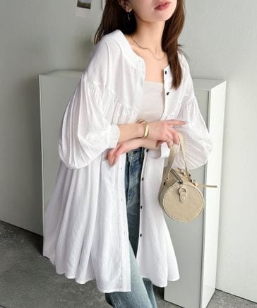 甘さ控えめの好バランス◎ウエストタック袖フリルビッグ長袖シャツce1110127