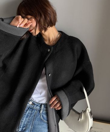 配色で差がつくベーシックな一枚。Wフェイス配色ニットカーディガンce1380005
