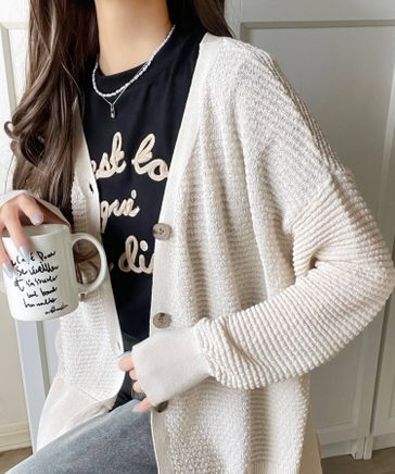 ゆるっと羽織って、即こなれ見え。表面変化ブークレニットカーディガンce1260498