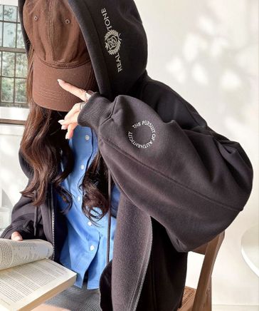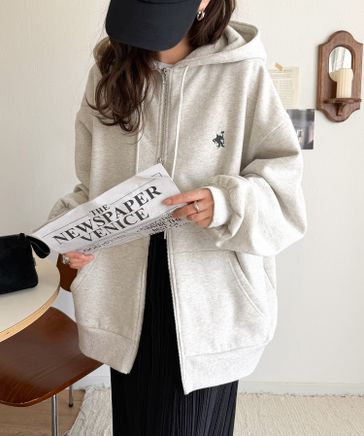 羽織って暖か、さらりと洒落感。胸元ワンポイント刺繍裏起毛ダブルジップパーカーce1260601