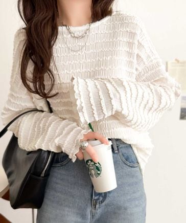 ゆったりシルエットでこなれ感をプラス。フクレジャガードトップス(長袖)ce1260488