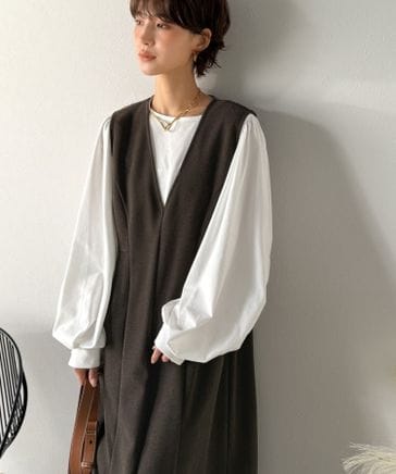 1枚でサマになる主役級。Vネックロングジャンパースカート ce0420043