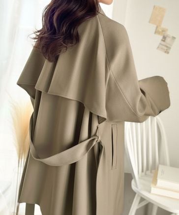1枚あれば着回し自由自在。ケープ付きスタンドカラーミドル丈コート(ベルト付き)ce1265021