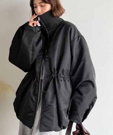 トレンドの華奢見え。衿リブウエストドロストバルーンパディングコートce1265034
