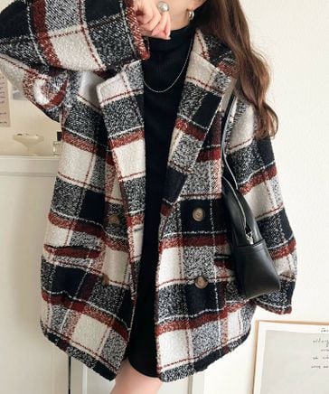 レトロな主役級アイテム。ブークレー起毛チェック柄ダブルジャケットコート