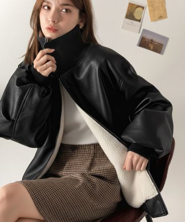 【Java】2wayフェイクレザー×ボアリバーシブルブルゾンjv1010525