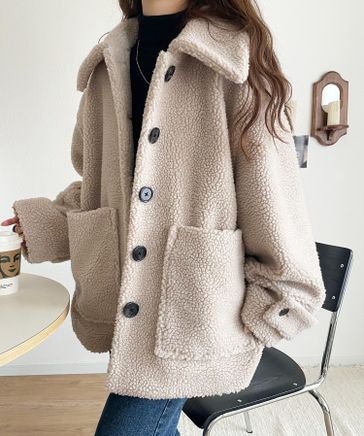 冬支度♪ふんわり軽やか×暖かみたっぷり!コクーンシルエットテディベアボアブルゾンce1240104 ¥5,998 税込